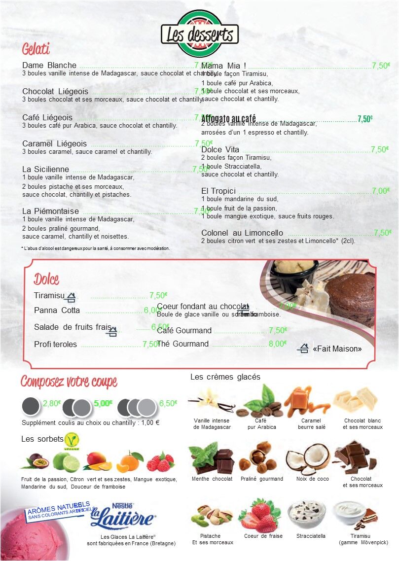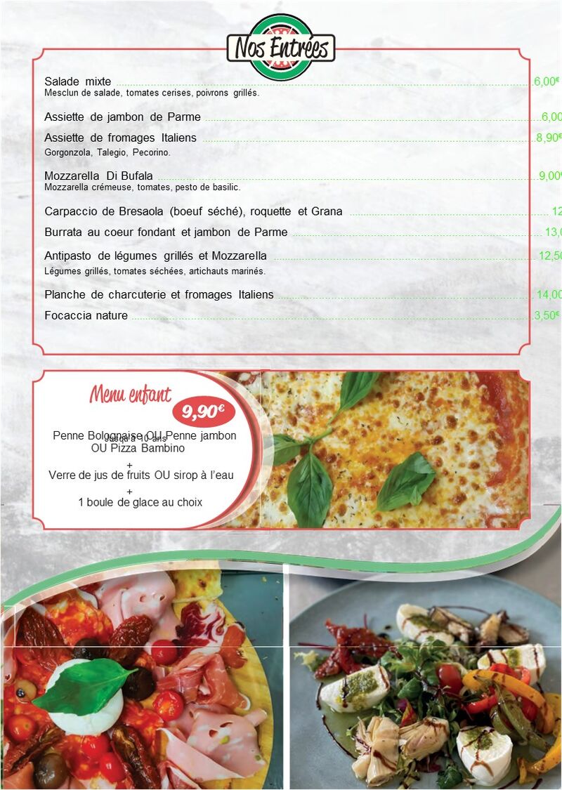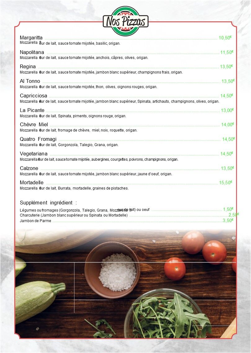 Toute la charcuterie, les fromages et nos vins proviennent directement d'Italie.
